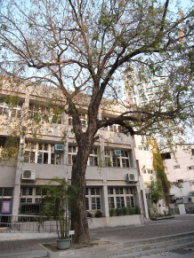 在一旁的是歷史悠久的女生宿舍,斑駁的牆壁、叢生 的藤蔓夾雜著歲月的痕跡,似乎與這顆壯碩的大樹有著相依為命的情感, 無語的相伴給予它往更遼闊天際邁進的動力。