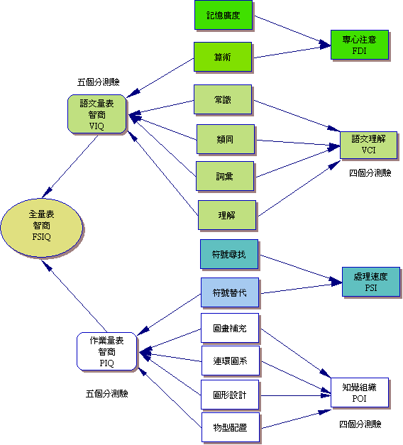 - 若 |語文量表(VIQ)-作業量表(PIQ)|≦19,則計算全部分測驗量表分數的平均數